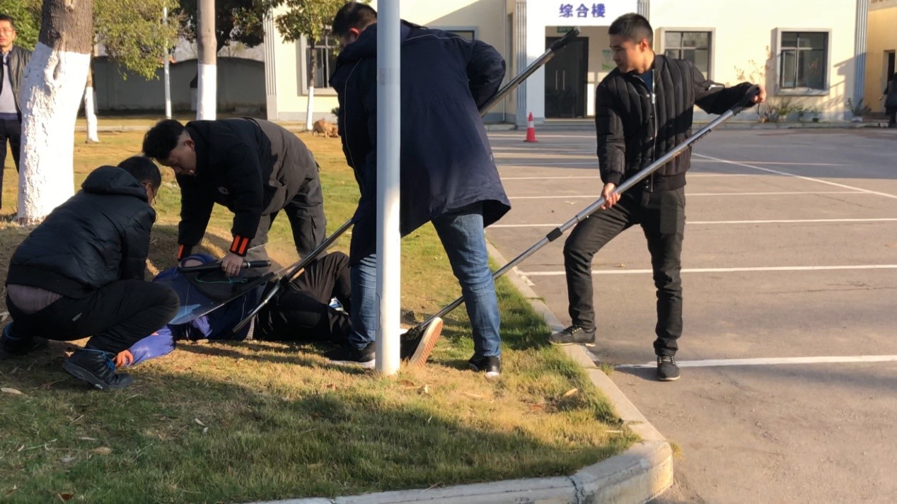 演練中,兩名暴恐分子打著送快遞的幌子相互配合分散門(mén)衛(wèi)注意力,然后手持兇器強(qiáng)行闖入加壓站生產(chǎn)區(qū)企圖施暴,門(mén)衛(wèi)發(fā)現(xiàn)并阻止無(wú)效后吹響了警示哨。收到警示信號(hào),反恐組副組長(zhǎng)第一時(shí)間沖出辦公室,攔截欲前往中心控制室的暴恐分子,并讓辦公室工作人員撥打110報(bào)警,在與兩名恐暴分子交涉無(wú)果后,反恐組組長(zhǎng)警哨長(zhǎng)鳴并立即啟動(dòng)供水總公司加壓站反恐防爆應(yīng)急預(yù)案,發(fā)布緊急命令,站內(nèi)反恐暴人員拿起武器從維修班一涌而出將兩名恐暴分子團(tuán)團(tuán)圍住,以防其進(jìn)入站內(nèi)制水車間及清水池,造成人員傷亡,影響全城供水。經(jīng)過(guò)配合圍捕等一系列行動(dòng)后,最終將暴恐分子制服。