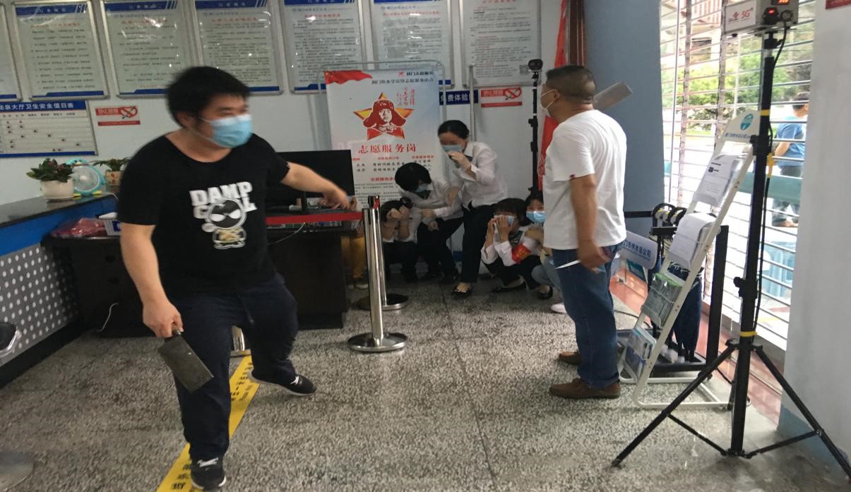 17時(shí)整,兩名持刀“劫匪”瞅準(zhǔn)時(shí)機(jī),突然沖進(jìn)了正在營(yíng)業(yè)的龍泉大廳,一人控制外廳“用戶”,一人關(guān)閉大門,讓收費(fèi)人員措手不及。應(yīng)歹徒要求,所有人員雙手抱頭蹲在墻角,僅留一名收費(fèi)員將現(xiàn)金裝進(jìn)塑料袋。班長(zhǎng)當(dāng)機(jī)立斷由她來(lái)和歹徒周旋,其他人員觀察的體貌特征。歹徒打劫離開之際,迅速啟動(dòng)應(yīng)急預(yù)案,觀察歹徒離開方向、保護(hù)現(xiàn)場(chǎng)、按響報(bào)警器、檢查人員有無(wú)傷亡、向領(lǐng)導(dǎo)報(bào)告、調(diào)查取證、清理現(xiàn)場(chǎng)、恢復(fù)營(yíng)業(yè),整個(gè)過(guò)程做到了快速、安全、有序。