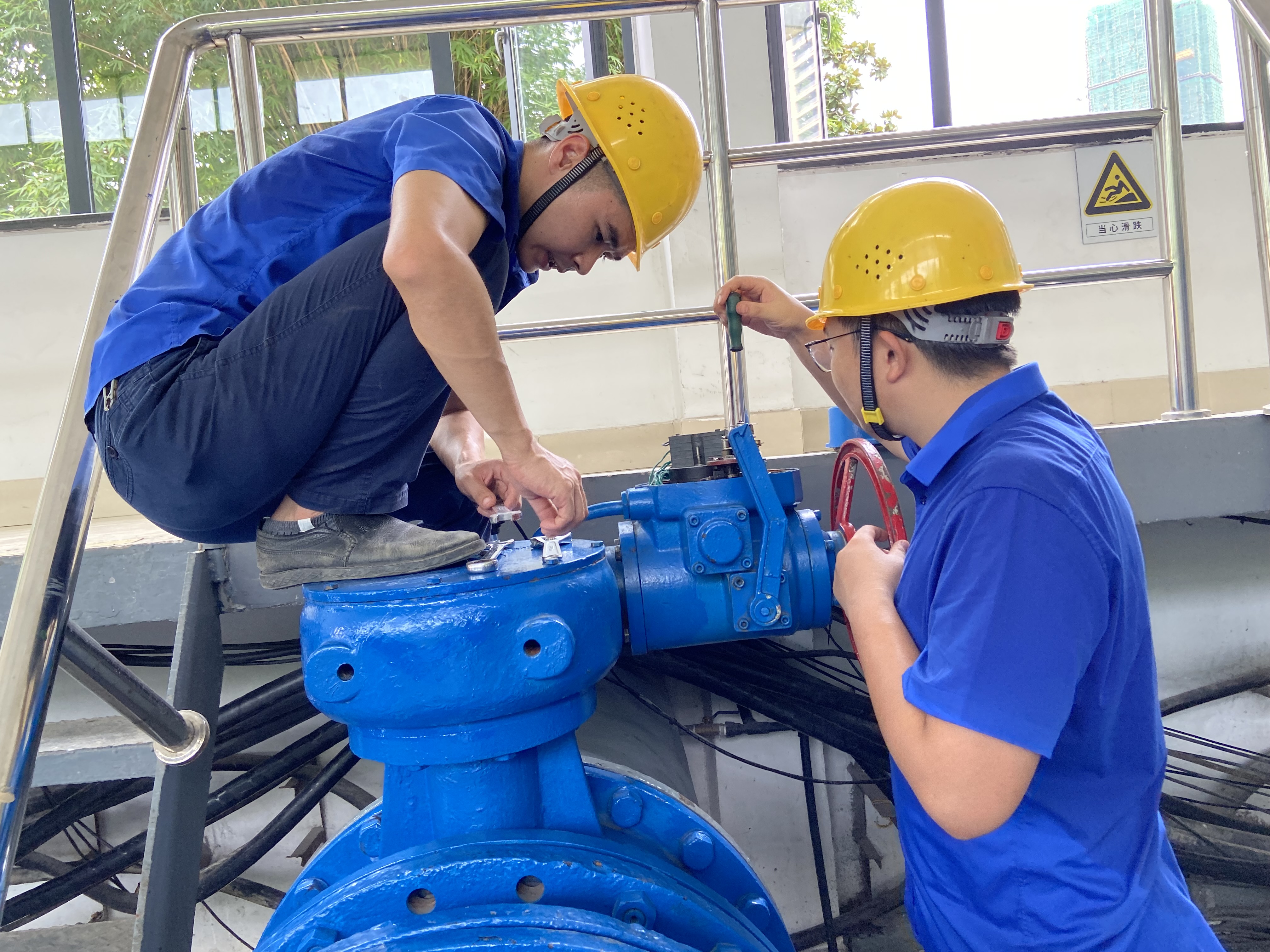 7月16日上午9:00,巡視人員發(fā)現(xiàn)中壓泵房1#機(jī)組閥門無法正常開啟,經(jīng)檢查,發(fā)現(xiàn)閥門控制系統(tǒng)故障,行程過力矩,導(dǎo)致執(zhí)行器外殼破裂,固定軸承損壞。相關(guān)人員立即上報站長。了解情況后,站長當(dāng)機(jī)立斷,立即部署安排搶修工作。維修人員全員出動,與時間賽跑,焊接執(zhí)行器外殼、更換軸承及閥門、較準(zhǔn)行程,在40℃高溫下歷時近十小時,工作服反復(fù)濕透多遍,終于趕在當(dāng)晚19:00完成了任務(wù),最大程度減少了對用戶生活帶來的不便。