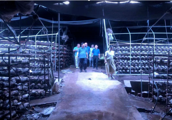 他們到雄峰村香菇基地,了解生產銷售情況。