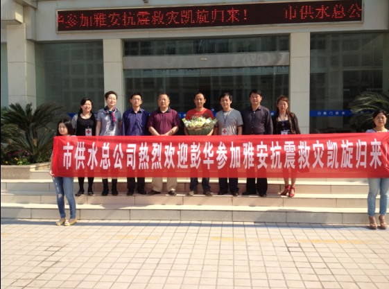 512日上午,市住建委領(lǐng)導(dǎo)以及供水總公司干部職工在供水大樓前熱烈歡迎供水職工彭華從四川雅安救災(zāi)一線平安勝利歸來(lái)。