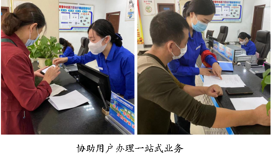 收費(fèi)中心6名黨員佩戴黨徽,在各自崗位上帶頭做好服務(wù)。集團(tuán)各營業(yè)廳均設(shè)置“黨員示范崗”和 “學(xué)雷鋒志愿服務(wù)崗”,配備緊急醫(yī)用藥品和應(yīng)急物資,以備用戶不時(shí)之需。志愿者們配好綬帶上崗,主動(dòng)回復(fù)業(yè)務(wù)咨詢,做好答疑解惑,貼心為困難老人代辦業(yè)務(wù),贏得用戶一致好評(píng)。