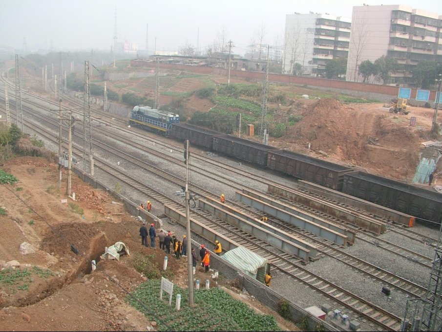 經(jīng)供水公司與鐵路部門協(xié)調(diào),武漢鐵路局、武鐵設(shè)計院、西南設(shè)計院擬訂采用架空項進(jìn)法穿越焦柳鐵路線5股道,定制鋼筋砼套管,管節(jié)間采用鋼板內(nèi)漲圈接口。在調(diào)查鐵路信號、通信光電纜徑路及數(shù)量,在確保鐵路運(yùn)輸安全的原則下進(jìn)行防護(hù)設(shè)計。武漢鐵路局工務(wù)檢測所編制施工圖。項目委托武鐵江騰公司具體施工。供水公司則完成穿管、銜接施工。