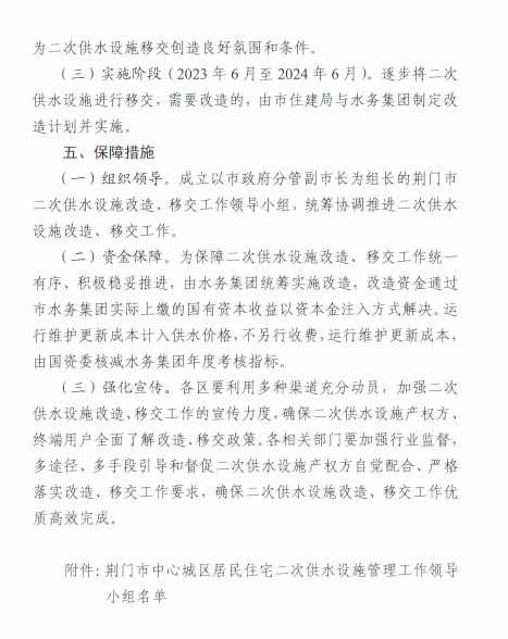 關(guān)于印發(fā)《荊廣市中心城區(qū)居民住宅二次 供水 設(shè)施管理工作實(shí)施方案(試行)》的通知