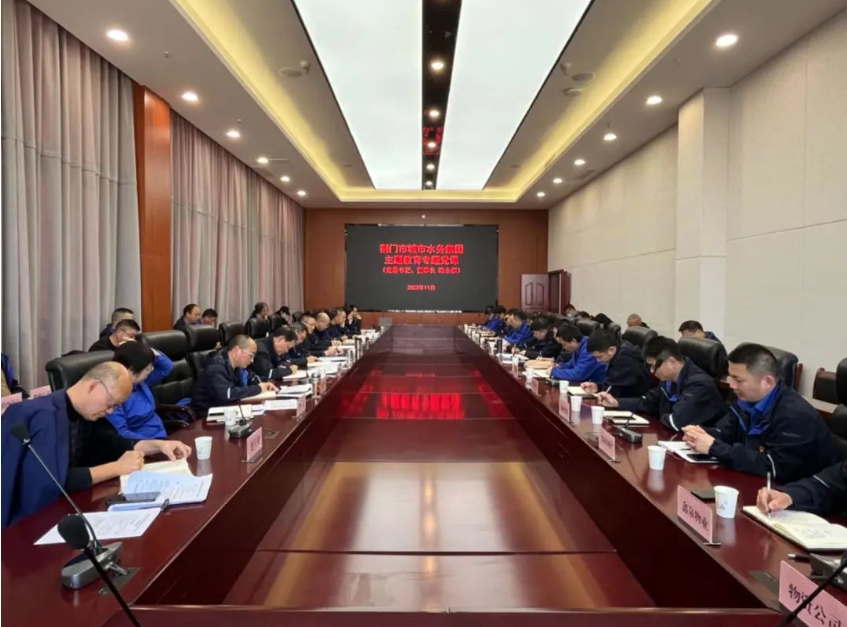 按照市委主題教育相關(guān)要求,11月21日下午,荊門市城市水務(wù)集團(tuán)有限公司(以下簡稱集團(tuán))黨委書記、董事長陳永根以“凝心鑄魂學(xué)思想 主動作為謀發(fā)展”為題,為集團(tuán)各單位、部門負(fù)責(zé)人及各支部書記講授學(xué)習(xí)貫徹習(xí)近平新時代中國特色社會主義思想主題教育專題黨課。市政府國資委副主任咼梅臨出席會議。