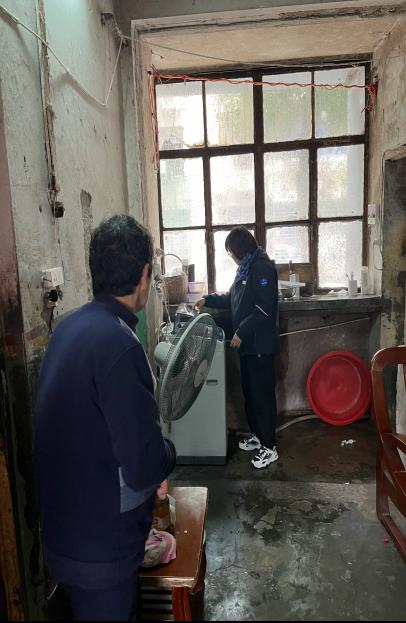 工作人員為老人送上用水發(fā)票,解釋上門原因。在征得老人同意后,對家里用水設(shè)施進行全面排查,發(fā)現(xiàn)多處水管存在老化、漏水等問題,找出用水量異常的主要原因。