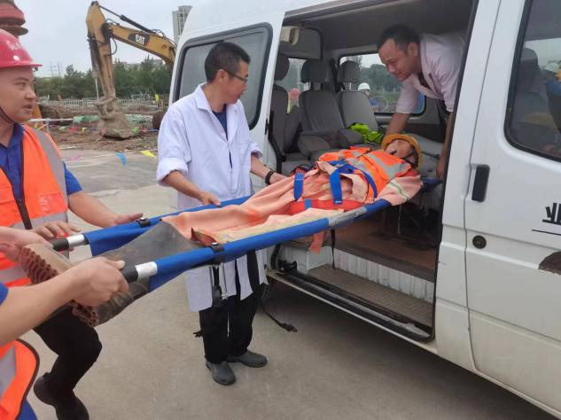 本次演練結(jié)合現(xiàn)場實際情況,生動模擬了施工過程中“因突發(fā)雙排腳手架倒塌導(dǎo)致作業(yè)人員墜落并被擠壓”的緊急情況。所有參與人員嚴(yán)格按照崗位職責(zé),高效完成了從發(fā)現(xiàn)上報、應(yīng)急響應(yīng)、現(xiàn)場指揮、警戒設(shè)立、搶險救援到醫(yī)療救護(hù)等一系列應(yīng)急處置流程。各方協(xié)同聯(lián)動,僅用15分鐘即完成演練任務(wù),達(dá)到預(yù)期效果。