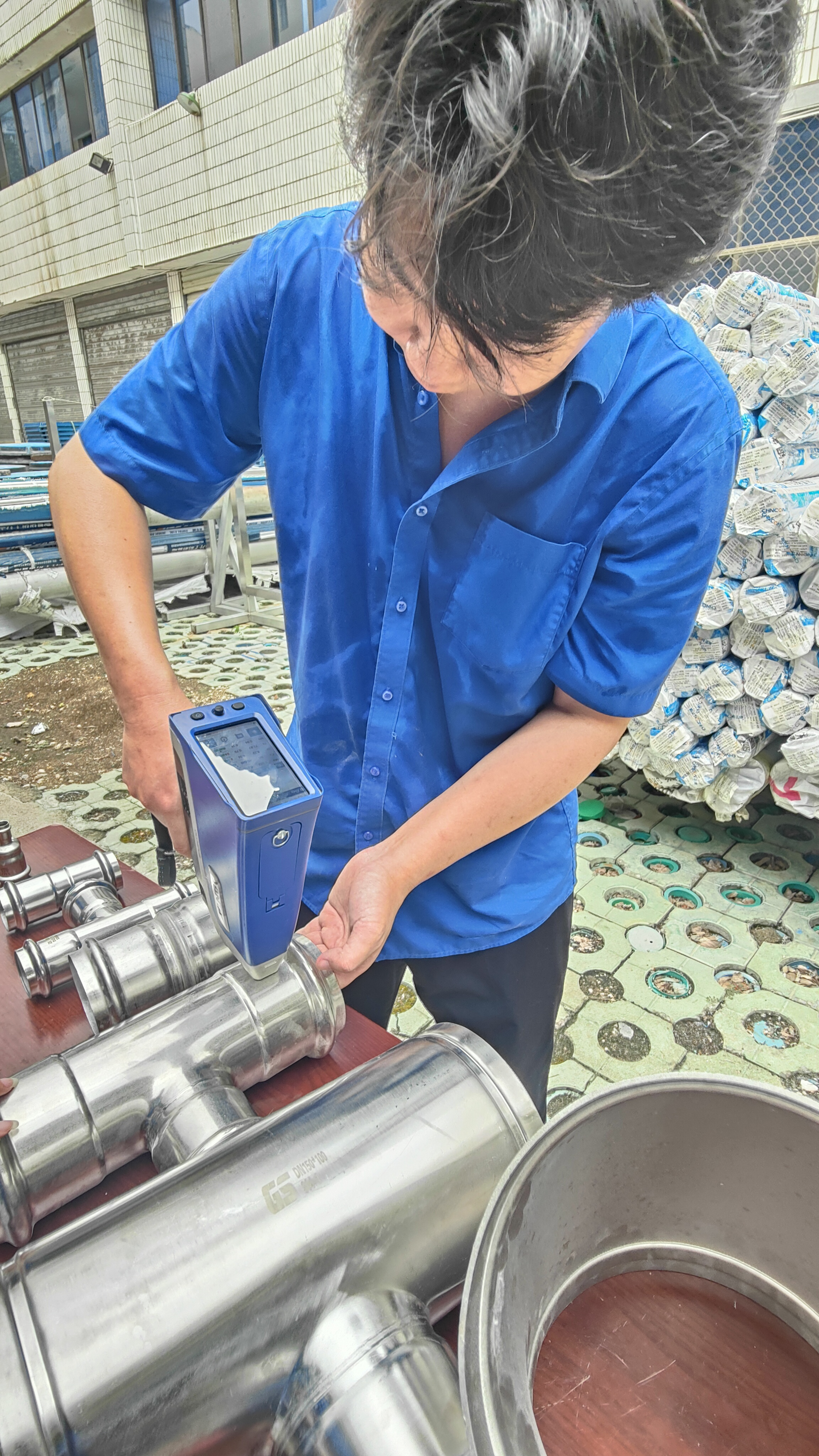 在實(shí)操比武環(huán)節(jié),參賽人員按流程對(duì)各類型號(hào)管件進(jìn)行鑒別與檢驗(yàn):運(yùn)用手持光譜儀檢測(cè)不銹鋼材質(zhì)成分,確認(rèn)是否符合不銹鋼304標(biāo)準(zhǔn);使用測(cè)厚儀測(cè)量管件壁厚,嚴(yán)格把控尺寸偏差;用卷尺測(cè)量長(zhǎng)度,核對(duì)與標(biāo)準(zhǔn)值的誤差。整個(gè)比武過(guò)程規(guī)范有序,參賽人員嚴(yán)謹(jǐn)操作,展現(xiàn)了扎實(shí)的驗(yàn)質(zhì)功底。