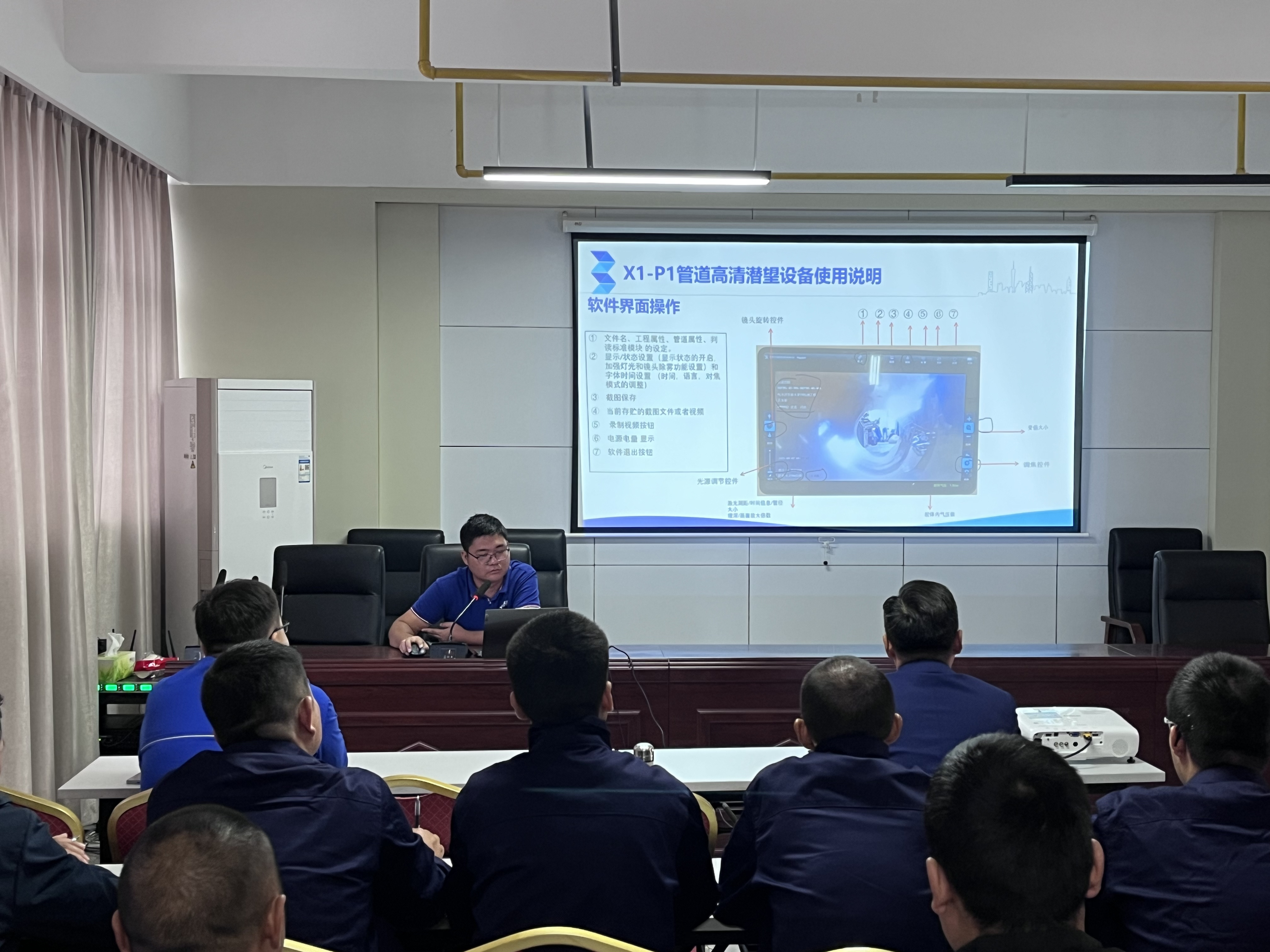 本次培訓采用“理論+實操”相結合模式。理論授課環(huán)節(jié),授課老師圍繞CCTV管道檢測機器人工作原理、設備結構組成、操作規(guī)范及安全注意事項等內容,通過PPT展示和應用案例開展系統(tǒng)授課。參訓員工全神貫注,詳細記錄操作要點,積極與老師互動交流,對這位“新伙伴”有了初步的理論認知。