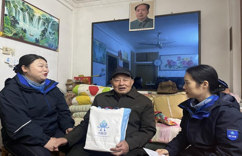 幫扶始于牽掛,情暖獨(dú)居老人。工作人員專程走訪87歲的李爺爺。老人年前痛失老伴,情緒一直低落。工作人員耐心陪伴、悉心安撫,用真誠驅(qū)散孤寂。這份牽掛始于2025年3月,當(dāng)時(shí)老人家中突發(fā)漏水,收費(fèi)員陳玲玲第一時(shí)間上門處置,快速化解難題。此后,她持續(xù)關(guān)注老人用水狀況,定期檢查設(shè)施、提醒安全注意事項(xiàng),長久的貼心照料,讓老人漸漸走出陰霾,親切地稱呼她為“玲姑娘”。