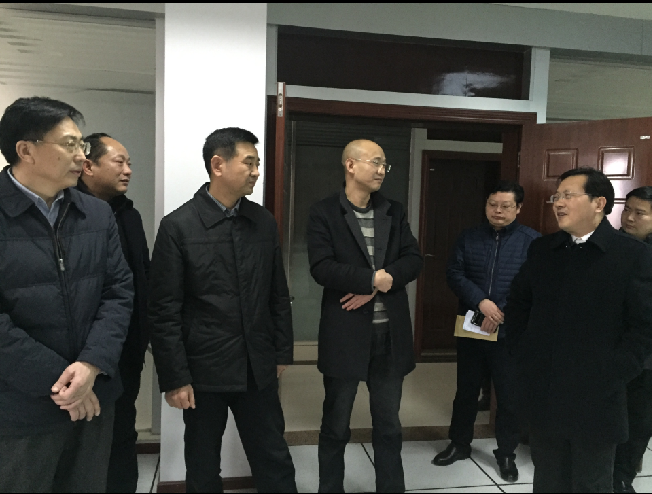 1月29日下午,副市長王良新(左一)、政協(xié)副主席舒行飚(右二)等領(lǐng)導在市住建委黨委書記、主任楊劍(左三)、公司黨委書記、總經(jīng)理陳永根(左四)陪同下親切看望慰問春節(jié)期間仍然堅守崗位的供水員工。圖為在調(diào)度監(jiān)控中心時的情景。