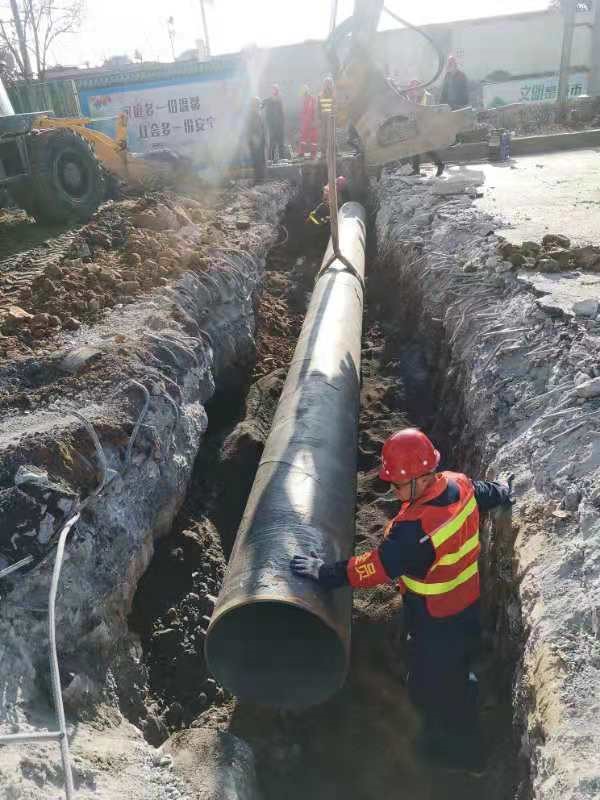 圖為荊門城區(qū)供水主管下穿培公大道施工現(xiàn)場(chǎng)