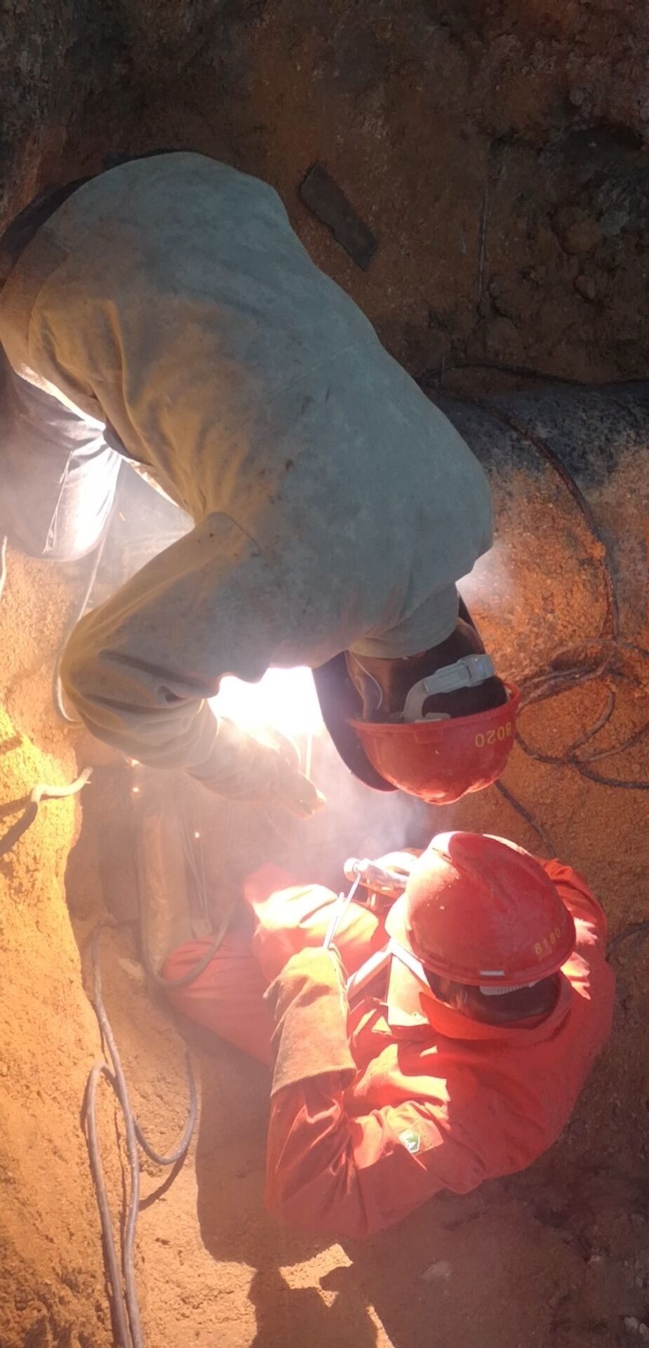 圖為施工人員連夜焊接安裝過路管