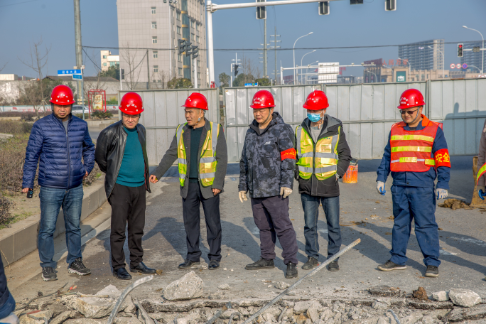 214日(農(nóng)歷正月初三)一大早,2臺(tái)挖掘機(jī)、2臺(tái)貨車、1臺(tái)工程車、1臺(tái)送水車、1臺(tái)小型鏟車陸續(xù)開到了現(xiàn)場(chǎng),2臺(tái)發(fā)電機(jī)組和相關(guān)材料也運(yùn)到了現(xiàn)場(chǎng)。7時(shí)許,近30名工作人員集結(jié)完畢。羅紅勝負(fù)責(zé)現(xiàn)場(chǎng)施工。他將工作人員分成交通組和施工組。交通組先擺放錐形安全桶引導(dǎo)交通,再用圍擋將施工區(qū)域隔離出來。隨后,交通組工作人員守在幾個(gè)路口引導(dǎo)交通。施工組也很快行動(dòng),路面切割、破碎,鋼筋剪切,碎渣拖運(yùn)……所有工作有序開展。