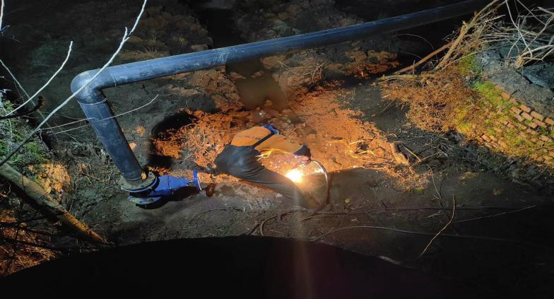 為保障正常供水、防止爆管影響周邊農(nóng)戶生產(chǎn)勞作,引起二水廠領(lǐng)導們的高度重視,研究決定對漏點進行封堵,經(jīng)過前期充分的準備。